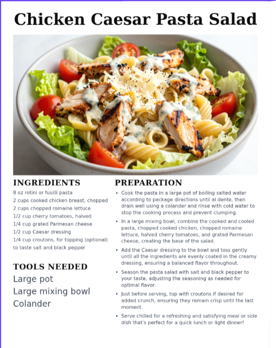 Quick & Easy Classics: Satisfy cravings fast with Speedy Chicken Pesto Pasta or refreshing Chicken Caesar Salad Wraps.